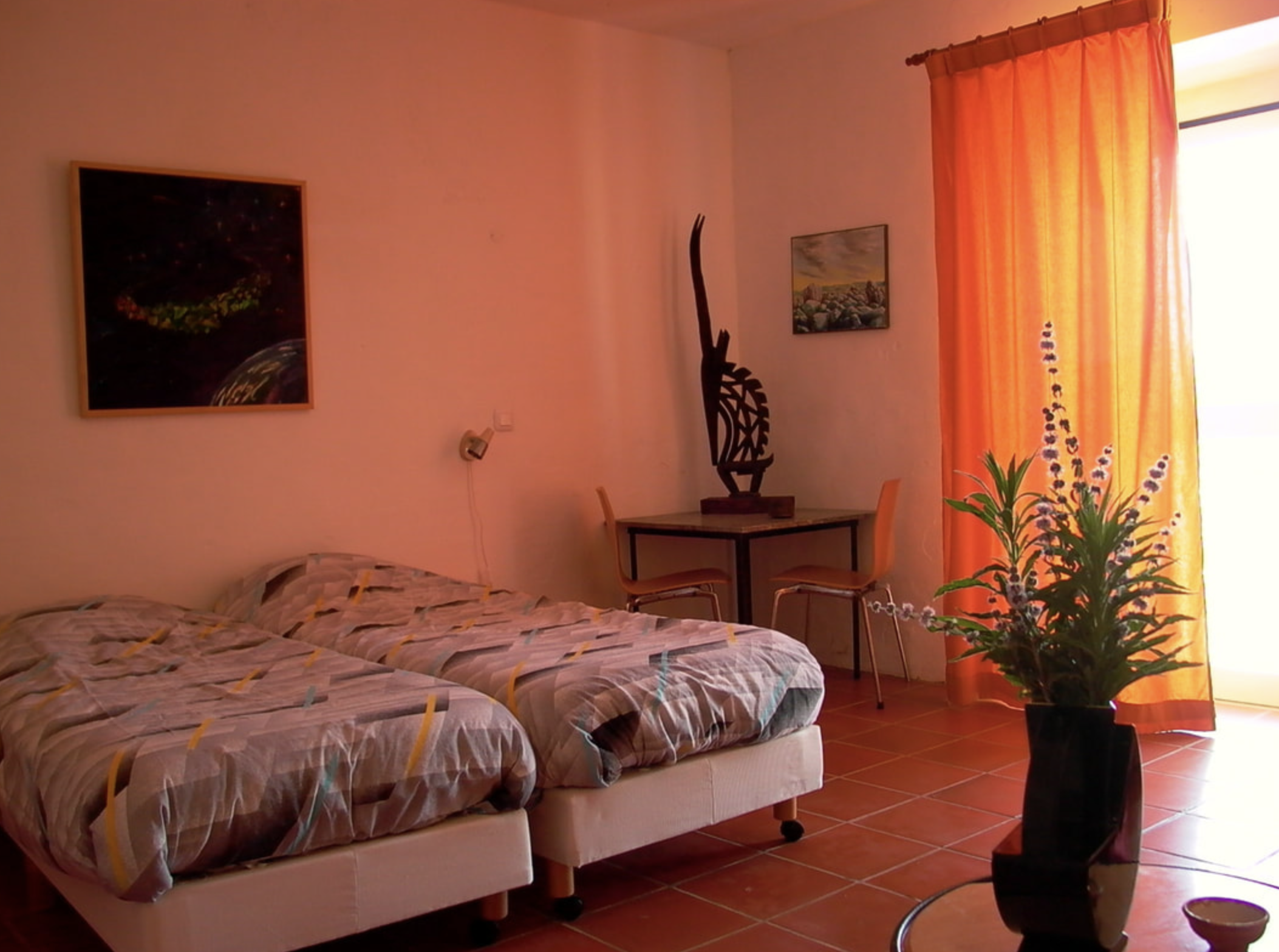Casa Vicente is located next to the Casa Principal. It has two terraces, one facing the Casa Principal and the other overlooking a valley. It has three 5 x 5m rooms, a kitchen and bathroom. One or two rooms can be converted into a studio. It has three outside doors and two terraces.