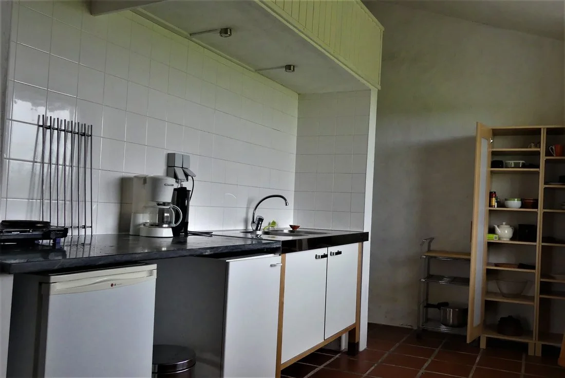 The kitchen has basic equipment such as fridge, cooking plate, microwave, coffee machine and water boiler, pots and pans. The tap water is of high quality.